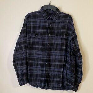 George Men's Black and Blue Plaid Shirt size large