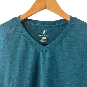George Mens Blue V Neck Short Sleeve T Shirt XL Knit Plain Basic Casual Pullover