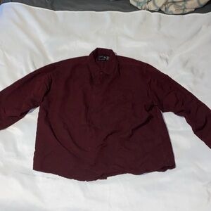 Stylish burgundy button down shirt. Perfect for casual wear. Comfortable and versatile.