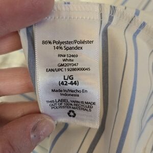 Keep it cool and classic with this George men’s short sleeve button-down shirt in a size large. Featuring a crisp white base with blue and black stripes, button front, and button-down collar, this versatile shirt is perfect for casual wear, office looks, or layering. Classic fit ensures all-day comfort and easy styling.