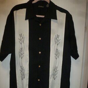 George Mens Embroidered Black/White Buttoned Short Sleeve Dress Shirt SzM(38/40)