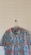 Stylish floral shirt with vibrant red, blue, and gray patterns. Ideal for casual wear. Comfortable and trendy.