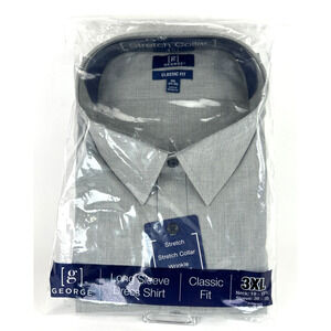 George Mens Gray Long Sleeve Stretch Collar Classic Fit Shirt 3XL & 38-39 NEW!