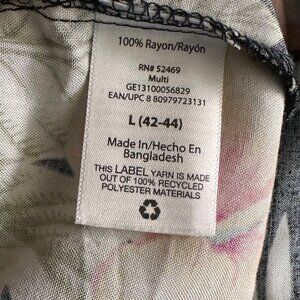 George Mens Hawaiian Shirt L Black Floral Print 100% Rayon Short Sleeve Button F