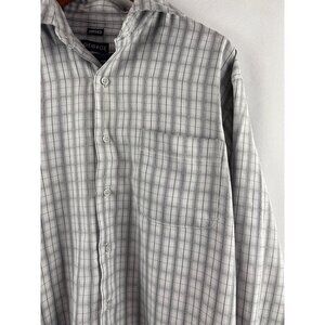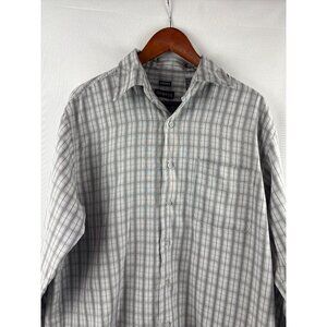 George Mens Medium Sueded Button-Up Plaid Shirt 38/40 Gray