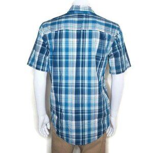 George Mens Short Sleeve Plaid button up Shirt Size S Blue & White vacation