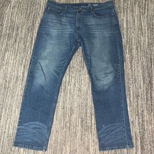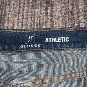 George Mens Size 40x32 Athletic Denim Jeans Blue Pockets Zip Fly Stretch Straight Leg Whiskering