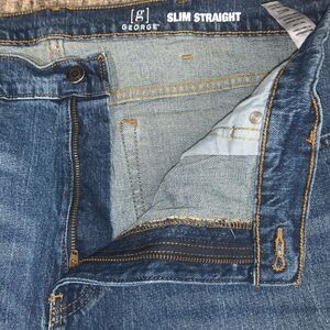 George Mens Size 40x32 Slim Straight Denim Jeans Blue Pockets Zip Fly Stretch