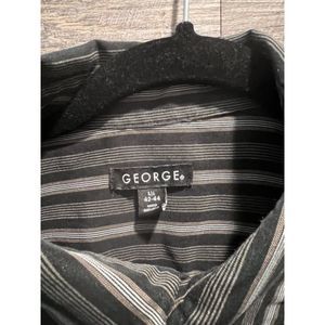 George Mens Strip Button Up Short Sleeve Dress Shirt Size Large
