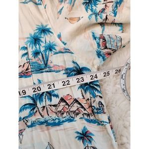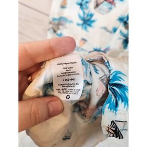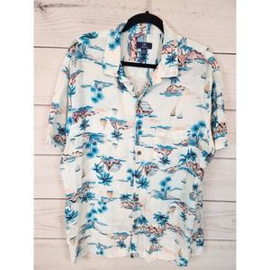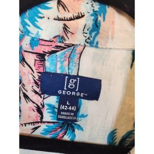 George Men's White Blue Short Sleeve Hawaiian Button Down Shirts Size Large