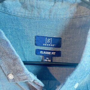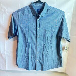 George Men's XL Classic Fit Stretch Blue Short Sleeve Button Down Shirt