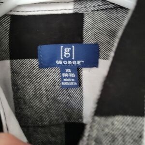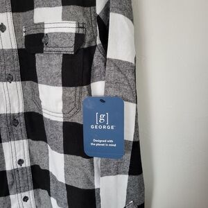 George NWT Men's XS Black White Check Buffalo Plaid Flannel Shirt Button Up Top
