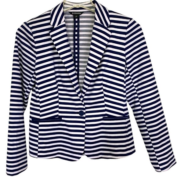 George Navy & White Striped Blazer Jacket Size 8 Nautical Office Core Academia