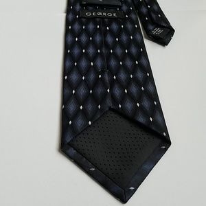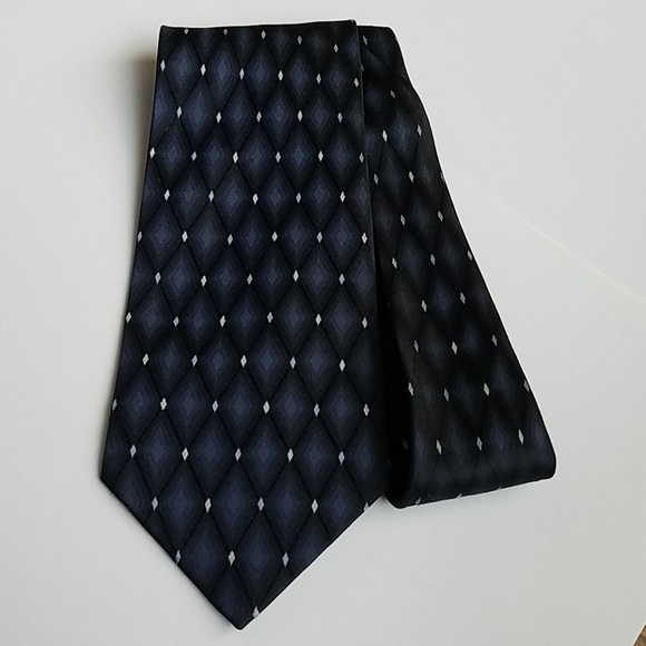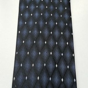 100% silk hand made. In great condition. Colors navy, blue and black with white and blue diamonds. Length 57" Width (widest) 4".