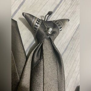 George Necktie Mens Pewter Gold-tone Polyester Clip On Suit 20” Long Neck Tie