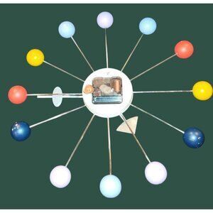 George Nelson Mid Century Modern 1949 Metal Wood Ball Clock TAIWAN Works