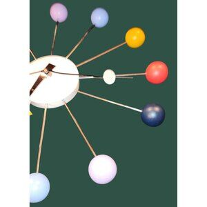 The George Nelson Ball Clock, from Vitra, is an authentic re-edition of a classic mid-century modern design from 1947. The Ball Clock is produced from the original design document from the Nelson archive with the blessings of the George Nelson estate. This functional and geometric work of art represents the work of one of America's most original designers.