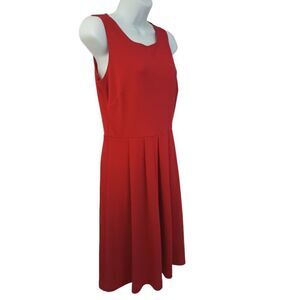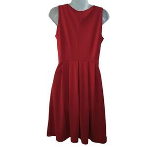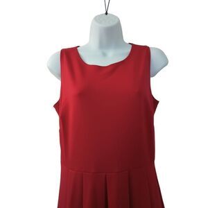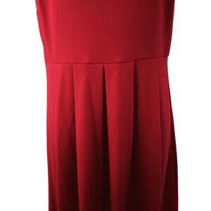 Beatiful red dress, super festive and a closet staple. Pleated at the waist and darted at the chest. Has stretch. Everyone needs a red dress for their wardrobe!