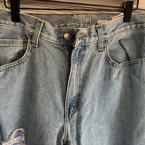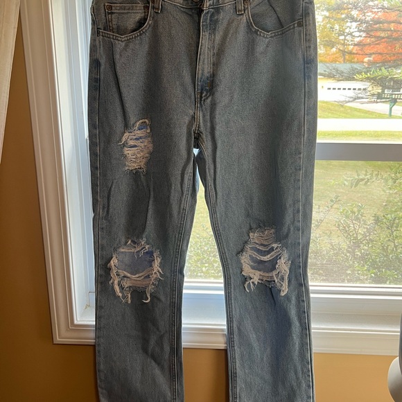Trendy ripped jeans for a casual style. Comfortable fit with a straight leg design. Ideal for everyday wear.