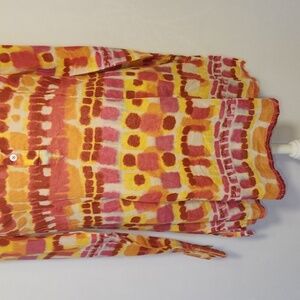 George Roth Los Angeles 100% Cotton Orange Tie Dye Long Sleeve Popover Tunic