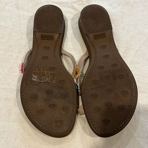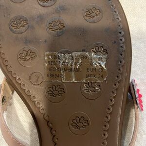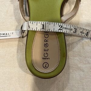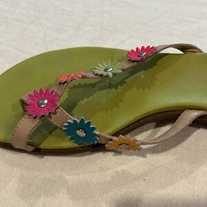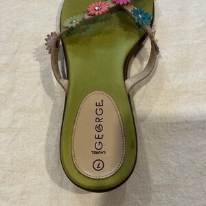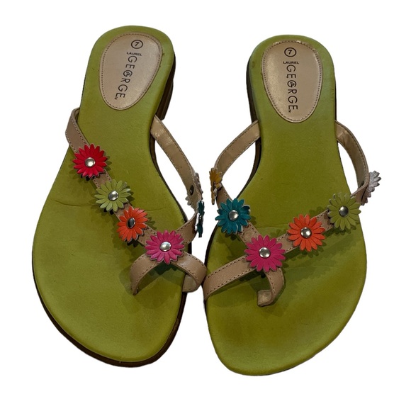 Stylish George sandals with vibrant floral accents. Comfortable green footbed. Perfect for casual wear.