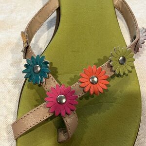 George Laurel Green and Brown with Multicolored Floral Leather Sandals