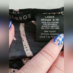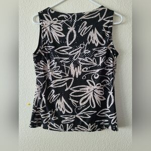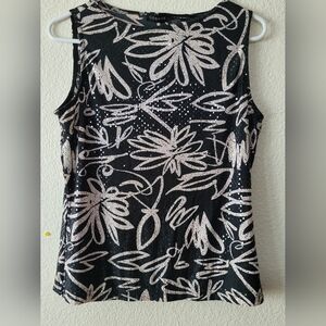 George Shiny Black And Cream Floral Tank Blouse Size Medium