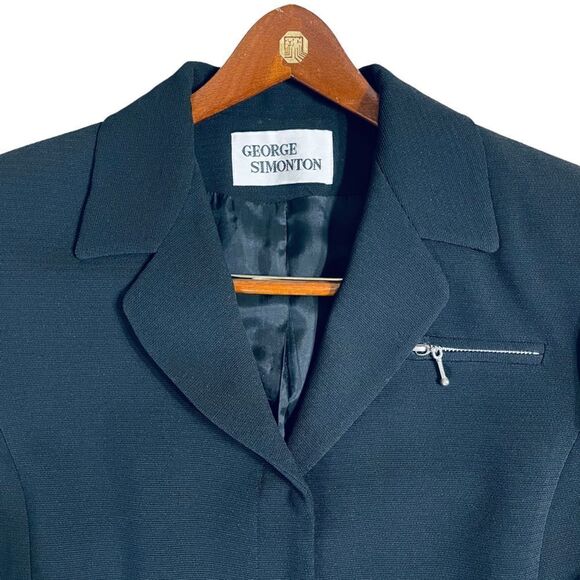 George Simonton Black Crepe Zip Detail Suit Jacket Blazer - size 12