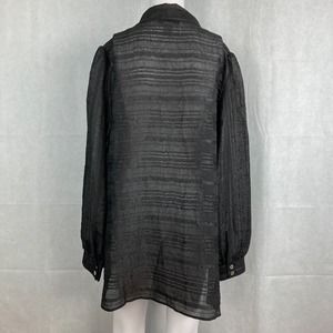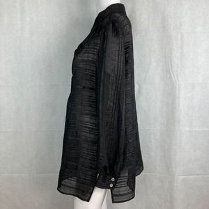 George Simonton Says Shirt Womens Sz M Black Sheer Lace Pleated Button Tunic