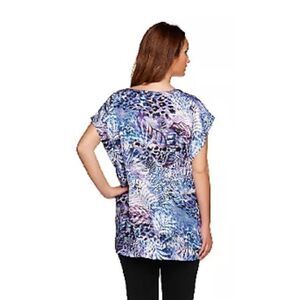 George Simonton Womens 2X Poppy Multi Tropical Safari Print V-Neck Tunic with Si