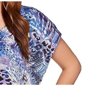 George Simonton Womens 2X Poppy Multi Tropical Safari Print V-Neck Tunic with Side Slits NWT