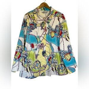 •Style Profile: George Simonton Nautical Bahamas Vacation Print Button Front Jacket Large Beach