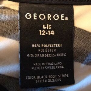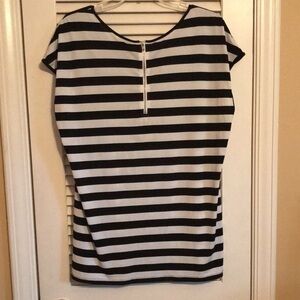 George Sleeveless Women’s Top. Black/white stripe. Size L Back zipper Boxy shape in Slinky soft fabric EUC
