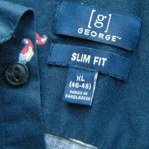 George Slim Fit XL(46-48) Dark Blue with Parrots Short Sleeve Shirt