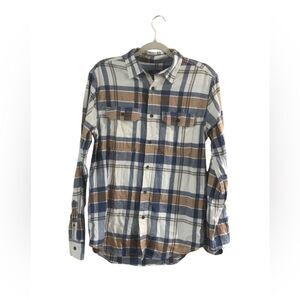 George men's flannel shirt in size small with a blue and brown pattern. Made from 55% cotton and 45% viscose. Features front pockets. Excellent condition with no issues.