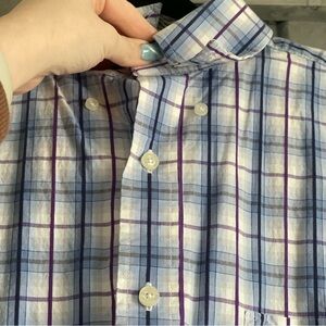 Blue purple white Size large Bust pit to pit measures 24” PREOWNED: excellent condition. No rips stains or tears. BOX SHIRTS B 0329