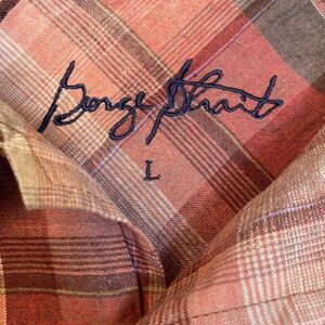 This is a wonderful Light Burgundy Plaid George Strait Linen Blend Shirt. It is in excellent condition!