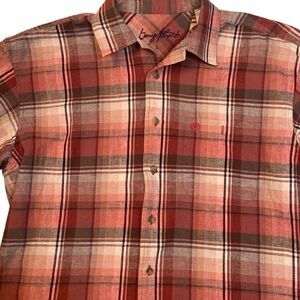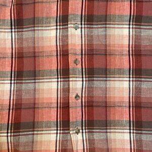 George Strait Linen Blend Light Burgundy Plaid Short Sleeve Shirt Men Sz Large