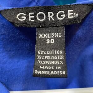This George blue blouse is a basic and minimalist piece, perfect for layering. Crafted from a comfortable cotton blend, it offers a tailored fit in a size 20. Ideal for creating simple, chic outfits! Back and front darts.