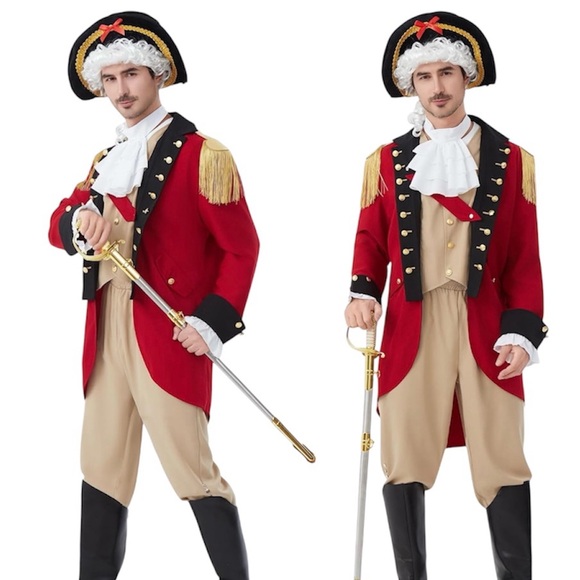 Unique George Washington Costume Founding Father Costume Adult Hamilton Colonial Revolutionary War Outfit with Wig, Hat. Size S
