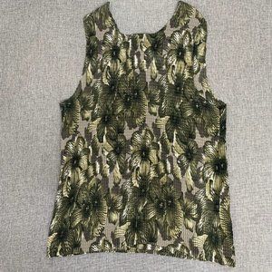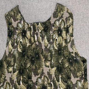 George Woman Accordion Floral Sleeveless Top Scoop Neckline X-Large Green Black