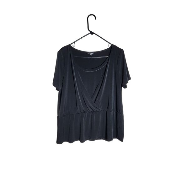 George Womens Black Short Sleeve Surplice Top Size L 12-14