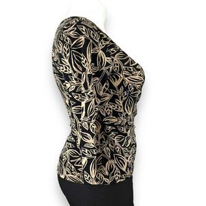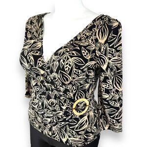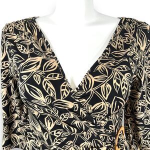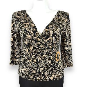 George Womens Blouse Top Faux Wrap V Neck Stretch Pullover Cream Black Large