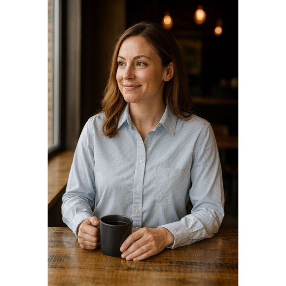 This George Stretch women’s button-up shirt is a versatile wardrobe essential. Made from a 72% Cotton / 24% Polyester / 4% Spandex blend, it offers a crisp structured look with comfortable stretch for all-day wear. The blue and white pinstripe pattern brings a timeless aesthetic, perfect for professional, casual, or layering styles.
