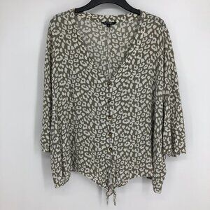 George Women's Grey abstract pattern Button $ Tie Front Dolman Blouse Size XL