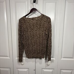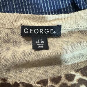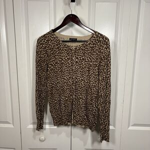George Women’s L Leopard Print Button Front Cardigan Sweater Brown Tan Animal