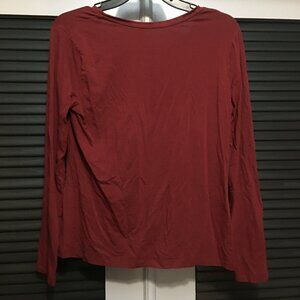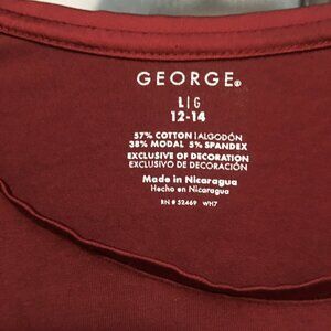 Selling a used George Women's Long sleeve Shirt in good condition no rips or stains could use a good ironing lol. Shirt is made of 57% Cotton 38% Modal & 5% Spandex size is Large 12-14 and color is a dark red.