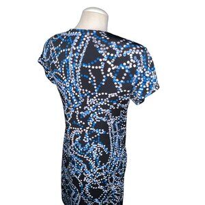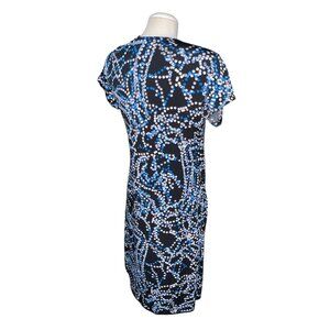 George Womens Polka Dot Pattern Wrap Dress M 8-10 Black/Blue Stretchy Short Slee