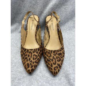 George Women’s Pump Heel Sling Back Faux Suede Leopard Print Point Toe Size 8