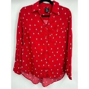 George Womens Red Button Up Shirt Collared Long Sleeve Top Size Small